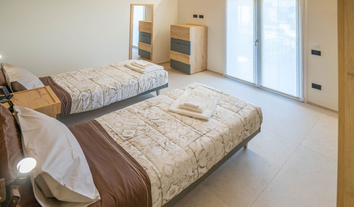 Situato al terzo piano, ospita fino a 6 persone con un ampio soggiorno, due camere da letto e due bagni.