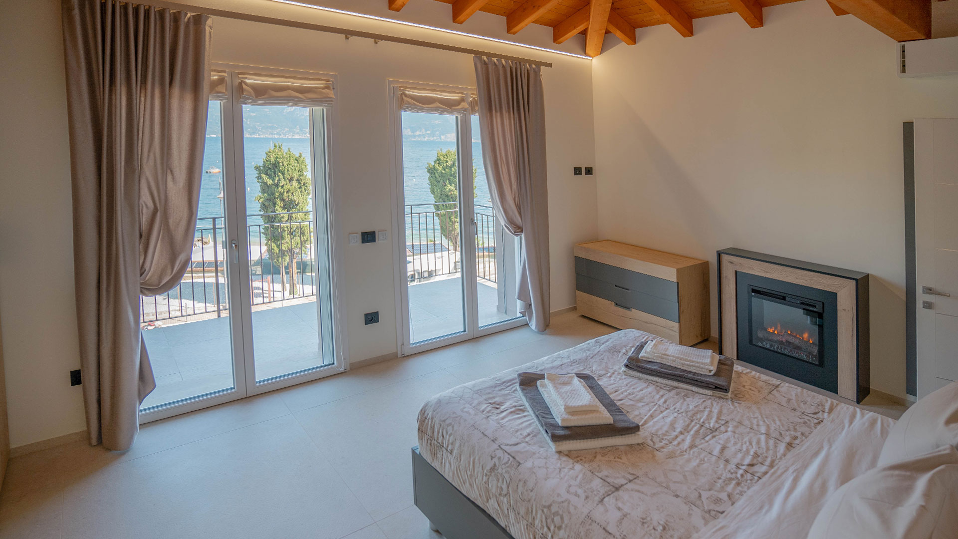 Camera matrimoniale con bagno privato e vista lago