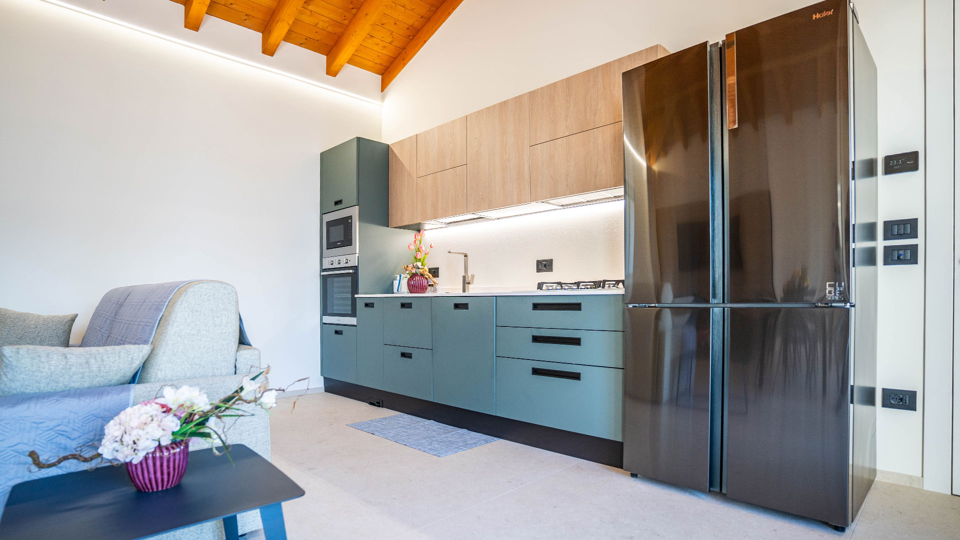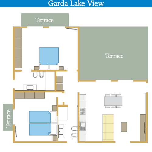 Big apartment of 90 m² on the third floor with a large living room, two bedrooms and two bathrooms. Ideal for up to 6 people, it has a large balcony with lake view where you can also have lunch and relax with an incredible view of Lake Garda.